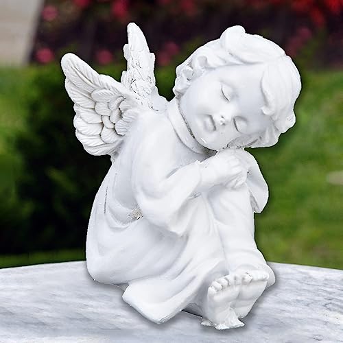 Hapivida Statua di Cherubino, 2.2×2.4in Resina Cherubini Statua di Angelo Bianco Statuetta da Giardino Statua di Cherubino Dormiente Scultura per Interni Ed Esterni Decorazione Domestica(#1)