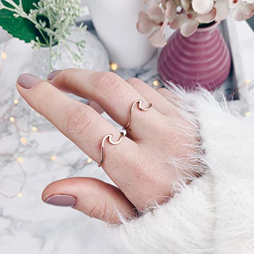 Happiness Boutique Delicato Anello Onda in Oro Rosa | Grazioso Anello Onda Acciaio Inossidabile