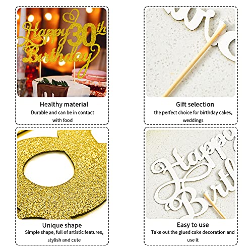 Happy 30th Birthday Cake Topper Grande, 2 Pezzi Oro Decorazioni per Torta per Ragazze Ragazzi Decorazione per Torte 30th Compleanno, Cupcake Toppers per Bambini Forniture per Feste