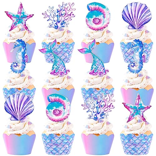 【Topper per torta a forma di sirena】 Topper per torta di compleanno a forma di sirena da 24 pezzi include 12 topper per cupcake e 12 pirottini per cupcake. Ci sono un gran numero di nostri, che possono soddisfare le tue diverse esigenze decorative.