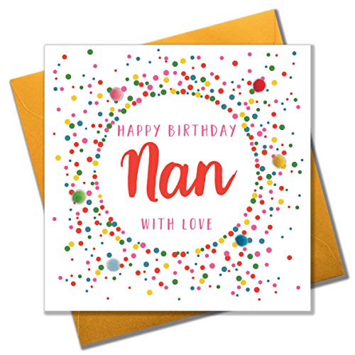 Pom pom"Happy Birthday Nan, with love" biglietto d' auguri