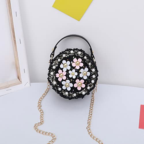 Happy Cherry Borsa a Tracolla Ragazze Bambina Mini Borsa Principessa alla Moda Borsetta Ragazzina con Fiori e Catena Idea Regalo di Compleanno Natale(Nero)
