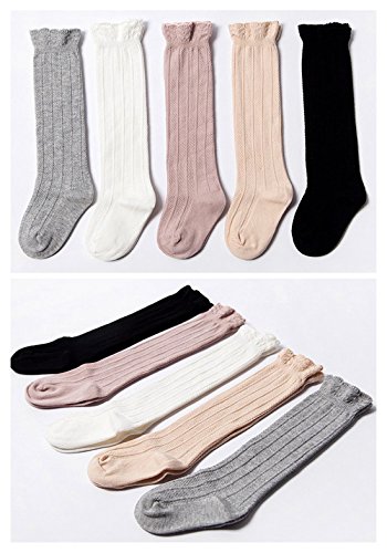 Happy Cherry - Calze alte lunghe al ginocchio, elasticizzate, in pizzo, antiscivolo, in cotone Multicolore 1 1-3 anni