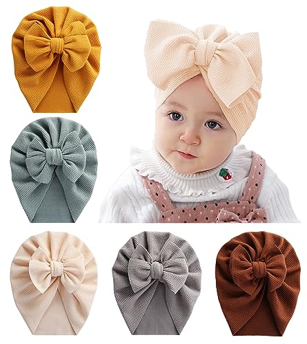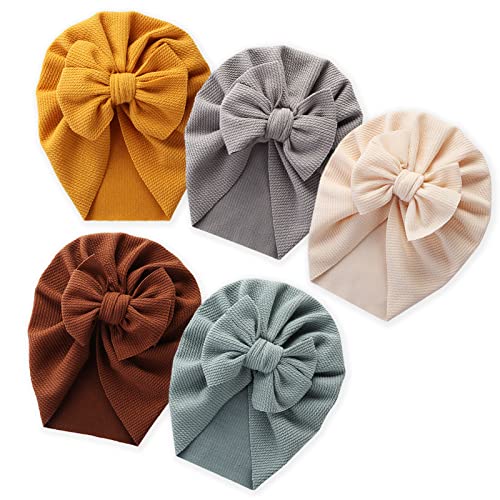 Happy Cherry 5 Pcs Cappello Turbante Neonati Cappellini con Fiocco Neonata Carini Ospedale Berretti Bambina Copricapi Avvolgenti Accessori per Capelli 0-3 Anni
