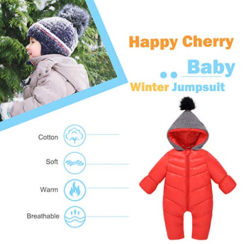 Happy Cherry - Pagliaccetto Inverno Neonato con Cappuccio Cappotto Caldo Bambini Tuta Invernale Abbigliamento Bambino Giacca Imbottita Tute da Neve Bambine - 6-12 Mesi