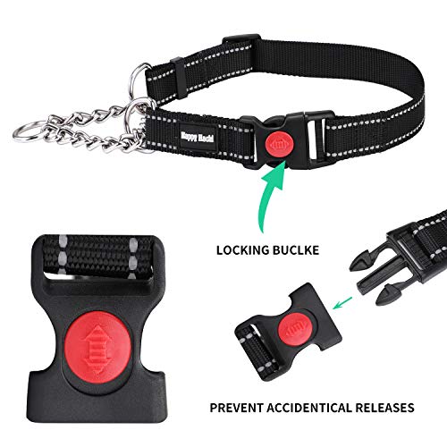 HAPPY HACHI Collare Cane Semistrozzo per Cani Collar Nylon Martingale Addestramento Formazione Riflettente Regolabile(M Nero)