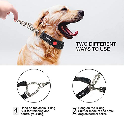 GENTILE STRINGERE SOTTO TENSIONE: HAPPY HACHI il collare a catena martingala si adatta liberamente al collo di un cane, ma può essere stretto quando i cani tirano. Eccellente per mantenere il controllo e mantenere il cane al guinzaglio, utile per l'addestramento di buoni comportamenti