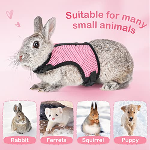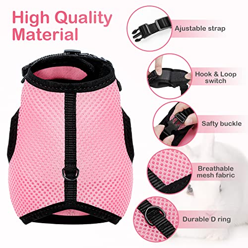 HAPPY HACHI Confortevole Imbracatura per Coniglio con Elastico Guinzaglio Morbido Pettorina Traspirante per Piccoli Animali Criceti Gatti(L Rosa)