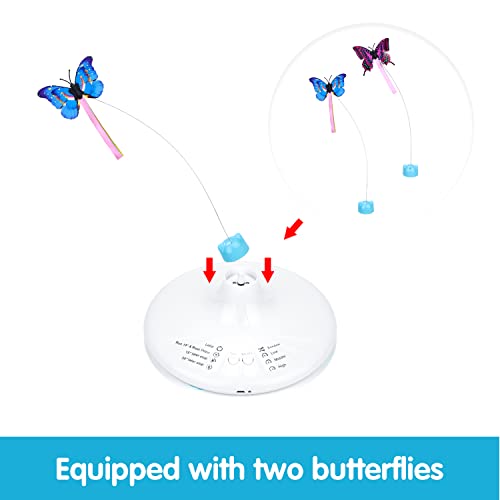 HAPPY HACHI Giocattolo Farfalla per Gatto Interno Interattivo, Gioco Automatico per Gattini Piccolo Elettrico USB Ricaricabile, con 2 Staccabili Farfalla Rotazione di 360 Gradi (multicolore)