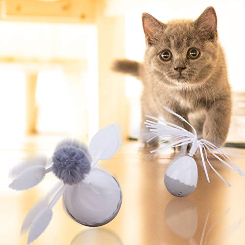 HAPPY HACHI Giocattolo Gatto Interattivo Intelligente Elettronica, Giochi Gatti Palle Piume Rotanzione, Gioco Automatico per Gatti in casa con 2 Teste Ricambio, Batterie Incluse