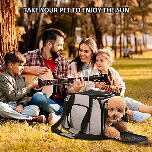 HAPPY HACHI Trasportini per Cani Piccola Leggero Borsa per Gatti Chihuahua Morbido Conveniente per Viaggio Camminando(43x28x28 cm, Grigio)