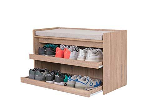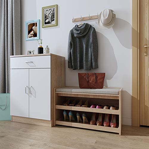Happy Home - Scarpiera con seduta e 2 ripiani, per 6-8 paia di scarpe, in legno, per ingresso, corridoio, soggiorno o veranda
