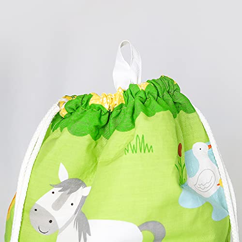 Happy Linen Company Borsa portaoggetti pieghevole reversibile per giocattoli per bambini con animali della fattoria