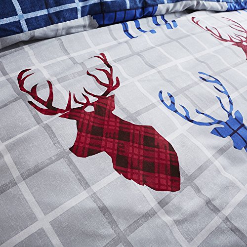 Happy Linen Company, set copripiumino con cervi delle Shetland, 100% flanella di cotone spazzolato, 100% cotone, Blue, Singolo
