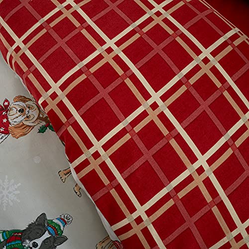Happy Linen Company Set Copripiumino e federe - Double Face con Tema Natalizio con Cani - Tortora Neutro - Set Copripiumino Matrimoniale