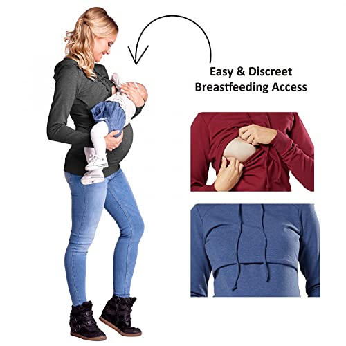 HAPPY MAMA Boutique Donna Felpa con Cappuccio in Jersey Premaman Allattamento 272 (Bianco Sporco, IT 40, S)