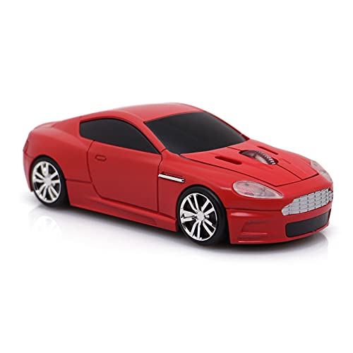 DAY DAY HAPPY Mouse per auto da corsa 3d mouse per computer senza fili martin con faro a led per pc laptop (Red)