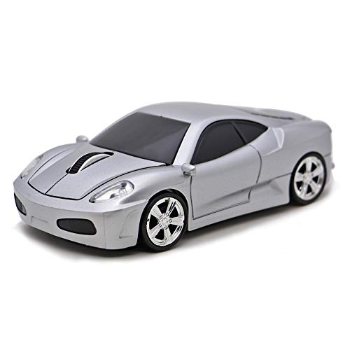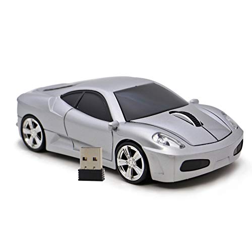 DAY DAY HAPPY mouse wireless USB 2.4GHz mouse per computer a forma di automobile con fari blu per PC portatile (Silver)
