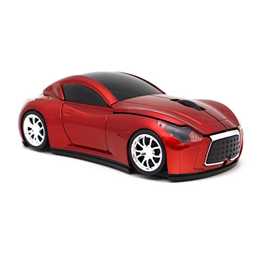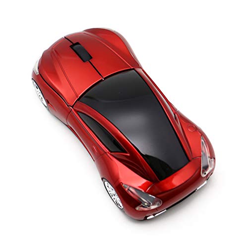 DAY DAY HAPPY mouse wireless a forma di automobile mouse per computer 1600 DPI con luce LED blu per PC portatile (Red)