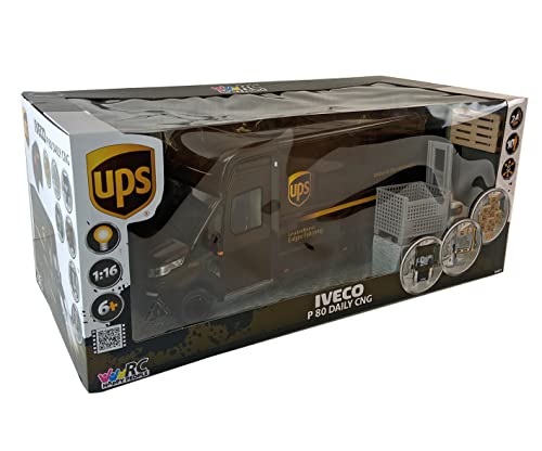 Happy People - 34451 - RC UPS Iveco veicolo radiocomandato marrone, 45 cm, con carrello elevatore
