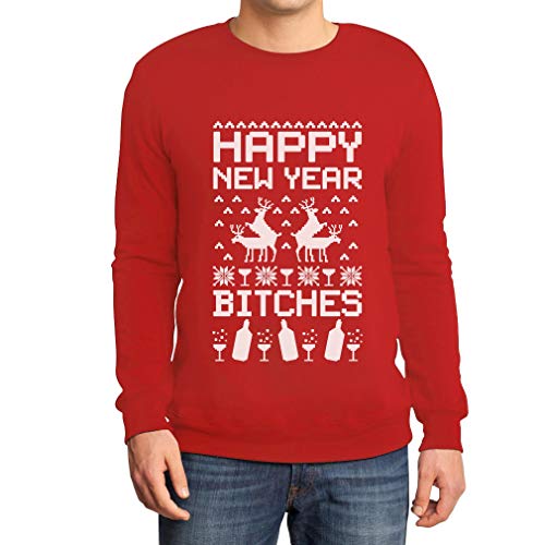 Happy New Year Bitches Maglione x Natale e Capodanno Felpa/Maglione da Uomo XX-Large Rosso