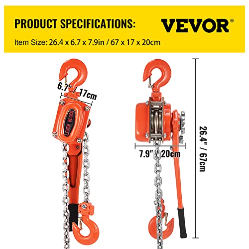 Happybuy 3T 3M Paranco a Catena a Doppio Cricco Paranco a Catena In Blocco Con Leva di Sollevamento Paranco Manuale a Leva con Cavo in Acciaio