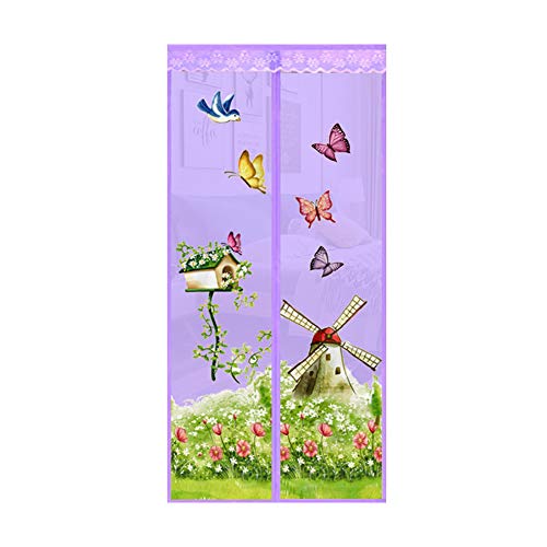 Happyhouse009 Farfalla mulino a vento da giardino, zanzariera magnetica, anti insetti mosche, a mani libere, estive, zanzariera magnetica, per porte e finestre, colore: viola, 100 x 210 cm