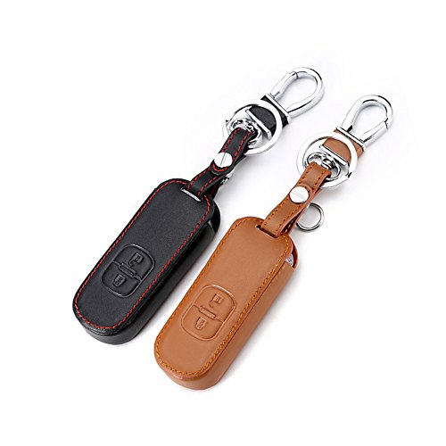 Happyit - Custodia in pelle per chiave auto Mazda 2 3 6 CX-5 CX5 Axela Atenza CX-7 CX-9 MX5 2 pulsanti portachiavi intelligente (nero)