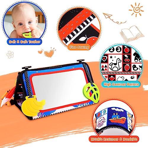 HappyKidsClub Giochi Neonato 0-12 Mesi, Specchio Montessori Libro Sensoriale Stoffa Tummy Time Regalo Bambino 1 2 Anno