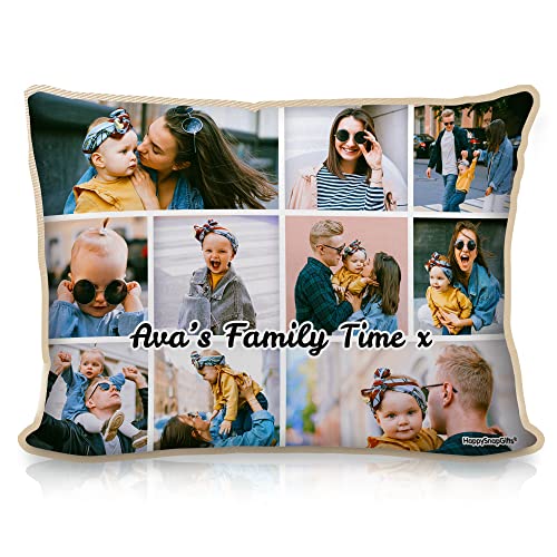 HappySnapGifts - Cuscino personalizzabile con collage fotografico, Cotone Policotone Poliestere, Tessuto di cotone naturale, Rectangle 57cm x 40cm