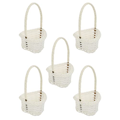 Happyyami 5Pcs Piccolo Cestino di Rattan di Vimini con Manico Wedding Flower Girl Cestino Cestino a Mano Cestino Cestino Cestino di Pasqua Cestino di Pasqua Decorazione Del Partito