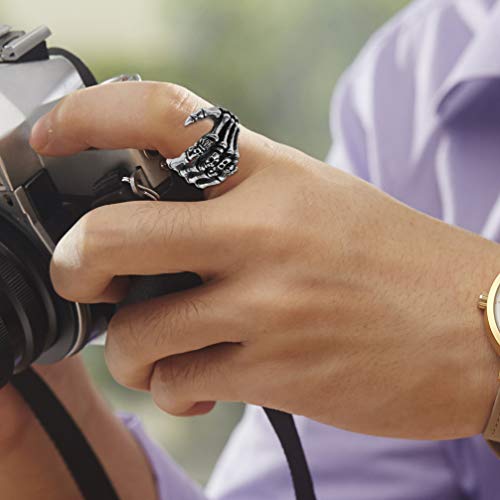 Happyyami Anello Teschio Gotico Teschio Mano Artiglio Anello Scheletro Punk Ring Gioielli di Halloween per Uomo Donna