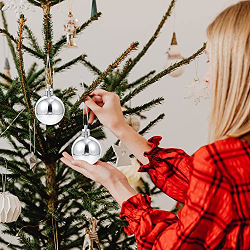 Happyyami Decorazioni Natalizie 48Pcs Argento Albero Di Natale Palle Assortimento di Scintillio Lucido Palle di Natale di Festa Appeso Rotonda Globo Palle Infrangibile per La Decorazione