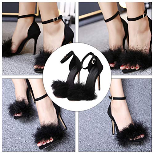 Happyyami Delle Donne Fluffy Piuma Sandalo Open Toe Cinturino Alla Caviglia Cinghietti Stiletto Abito Da Sposa di Alta Scarpe Tacco