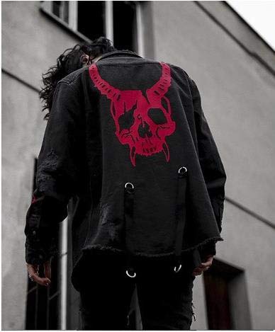 Harajuku gotico demone cacciatore cranio nero giacca denim uomini rock punk pesante metallo felpa sudadera bretelle foro streetwear Nero XL