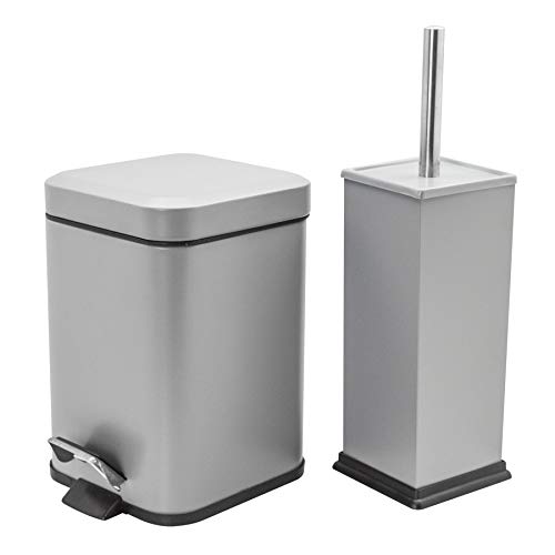 Harbour Housewares Cestino rifiuti a Pedale (3 Litri) e scopino Bagno - Quadrato - Grigio