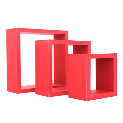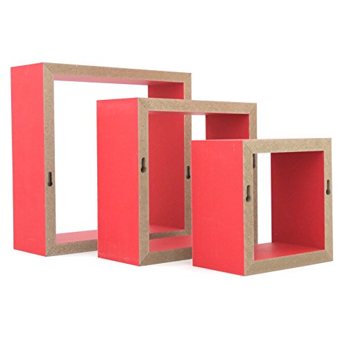 Harbour Housewares Mensole Fluttuanti a Cubo, da Parete, di 3 Diverse Dimensioni, Colore Rosso - Confezione da 3