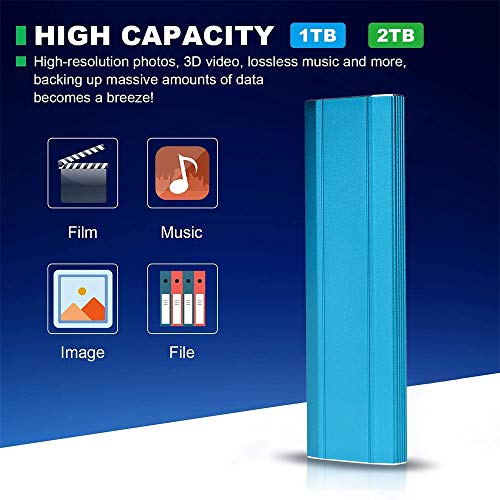 1TB Hard disk Esterno da, SSD Portatile Esterne, Hard disk per computer, USB 3.0 ultra sottile tipo C con USB-A, Mac, laptop (Blue-1TB)
