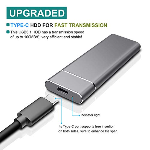 Hard Disk 1tb Esterno Portatile Type C USB3.1 Esterno Portatile per PC, Mac, Desktop, Laptop, MacBook, Chromebook