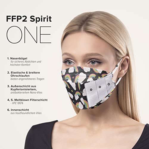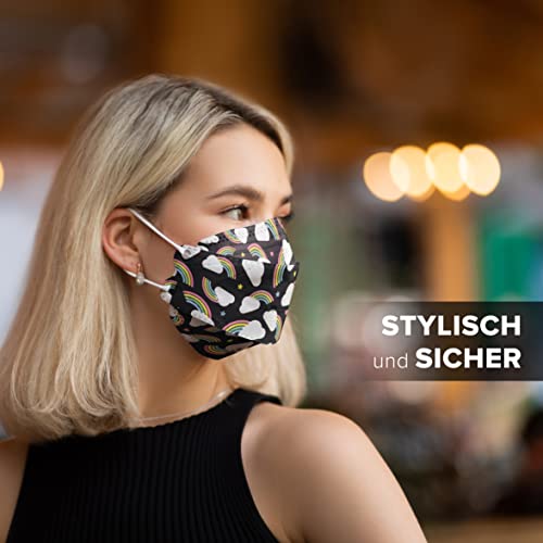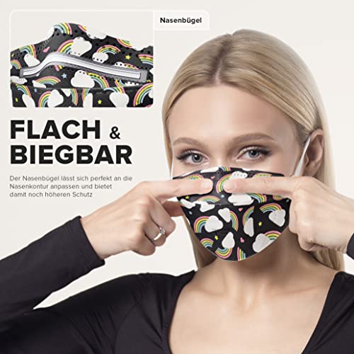 HARD 20 pezzi Maschera FFP2, Made in Germany, maschera certificado EN149:2001+A1:2009, filtrato 99,5 %, STANDARD 100 by OEKO-TEX - confezionati singolarmente - Arcobaleno Scuro