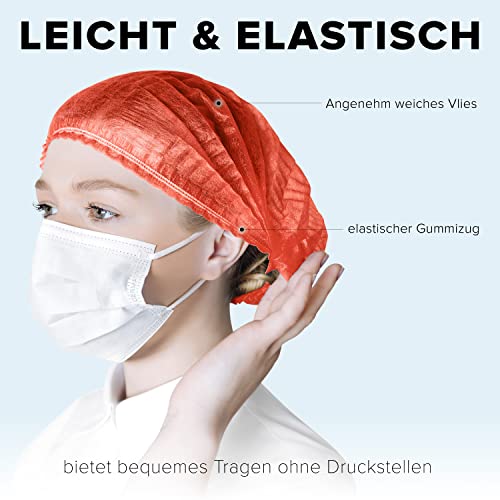 HARD 50 retine usa e getta per capelli con elastico | Made in Germany | Cappucci operativi | Copertura per infermiere | Protezione antipolvere | 50 pezzi rossotaglia S