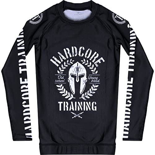 Hardcore Training Kids Rash Guard Helmet Nero Camicia a Compressione Manica Lunga Bambini BJJ MMA Boxeo Palestra Fitness No Gi (14 Years)