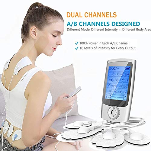 Facile da usare: 20 livelli di intensità in ogni canale. Due canali, che controllano 2 pad separatamente, consentono l'utilizzo simultaneo di 4 elettrodi pad È possibile scegliere tra le modalità 16 TENS o EMS.