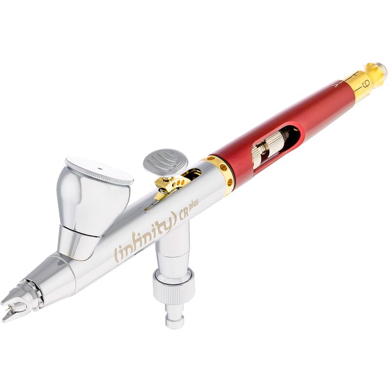 Descrizione L'Infinity CRplus dispone di un triplo rivestimento in rame, nichel e una cromatura esterna lucida. di leghe di nichel a causa del sudore della mano. I modelli Infinity CRplus sono disponibili con ugelli da 0,15, 0,2 o 0,4 mm o due in una variante. Un'innovativa guarnizione ad ago a lunga durata e le guarnizioni PTFE sulla vite e sulla valvola del bicchiere garantiscono una protezione sicura contro l'uscita di aria e il colore indesiderati, anche quando si applica vernici a base di solventi. Infinity CR plus 0,20 (articolo n. 126564) - Set di ugelli da 0,2 mm con pedana da 2 ml con triplo rivestimento, superficie cromata, tappo di protezione in esclusiva custodia con strumento per allentare l'anello centrale, collegamento rapido integrato