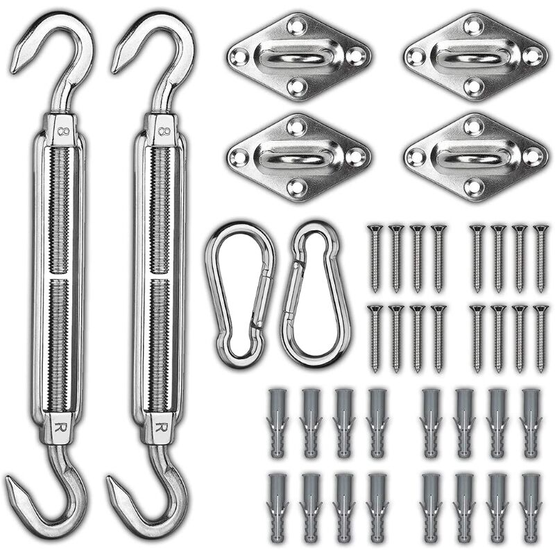 Descrizione: 100% nuovo di zecca e di alta qualità Caratteristiche: La tenda diamante fibbia è fatta di alta-qualità in acciaio inox 304, che ha estremamente elevata durata e sicurezza. La vela ombra hardware kit ha una elevata capacità di carico e anti-ruggine di disegno, che in grado di fornire una maggiore durata e aiutare a meglio fissare la tenda a vela. Tenditori regolabili in grado di fornire il più adatto tensione per la vostra tenda a vela! La lunghezza varia da 7.3 "a 11", E si può scegliere la distanza di copertura della vela dalla parete fissa/post/punto. Questo disegno renderà la vostra tenda da sole più compatto e stabile. Ci vogliono solo pochi secondi per completare l'installazione, dotato di estensioni per misura le viti di plastica in modo che si può essere saldamente fissato al muro per evitare che cada. La vite di espansione di plastica attaccato aiuta a installare saldamente, anche in condizioni climatiche estreme, può essere molto forte, può aiutare a meglio