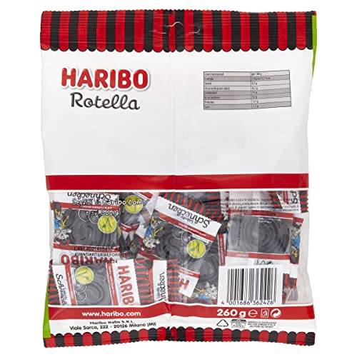Haribo Rotella Multipack, 20 Mini Bustine, Caramelle Gommose, Gusto Liquirizia, Ideali Per Una Festa Di Compleanno - 260gr