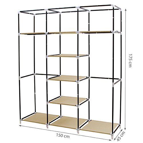 Il prodotto dispone di 2 bastoni appendiabiti e 9 ripiani in tela per tutti i tipi di indumenti e calzature.