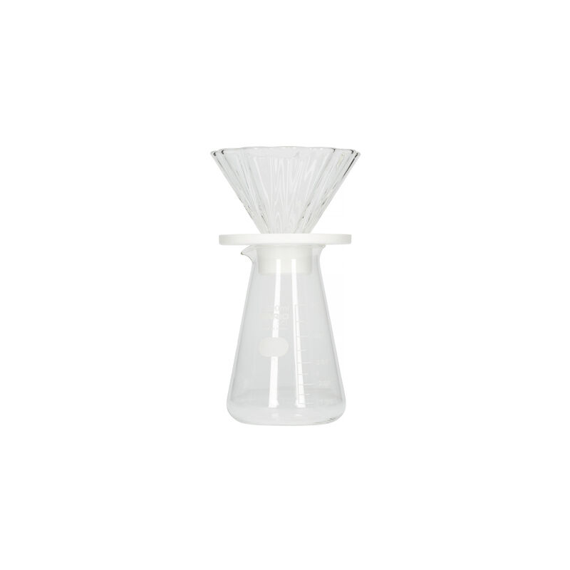 Il set comprende: - Hario - Cha Cha Drip Bouquet 02 Bianco - Infusore per il tè: infusore per il tè a forma di gocciolatore. L'infusore è facile da usare, consente di preparare un infuso pulito senza fondi in qualsiasi quantità e la sua forma unica soddisferà gli amanti del buon design. Cha Cha Bouquet è modellato sul classico gocciolatore per caffè Hario V60: un cono di vetro con pareti ondulate è incorporato in una guarnizione in silicone e una base in silicone. Hario è famoso per la produzione di vetro di alta qualità, puoi essere certo della sua forma unica e della precisione della lavorazione. L'elemento in vetro è prodotto in Giappone, mentre la guarnizione e la base sono prodotte in Cina. Per preparare il tè, posiziona semplicemente il gocciolatore con filtro di carta su un server o una tazza, versa il tè e versa l'acqua calda. I filtri conici Hario V60-02 (inclusi) sono adatti al gocciolatore. Il vantaggio di un filtro di carta è che l'infuso è privo di fondi di caffè. Il