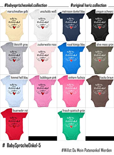 HARIZ Baby Body a maniche corte Willst Du Mein Patenonkel Werden zie, con scritta in lingua tedesca "Patenonkel", compleanno per nascita, con biglietto di auguri di compleanno, colore marrone