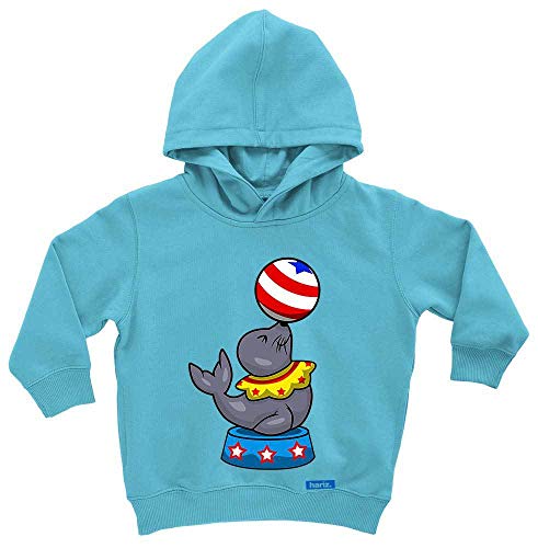 Hariz, felpa con cappuccio, leone marino circo, animali, asilo, incluso biglietto regalo Mare, azzurro. 1- 2 anni